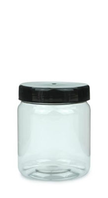 Contenitore in Pet Cilindrico da 500 Ml Trasparente con Tappo a Vite Nero, Filettatura 82 Rts