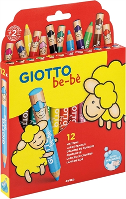 Giotto Be-be - 12 Matitoni - Super Lavabili con Mina Gigante Extra Soft + 1 Appuntamatitone - Art. F482000
