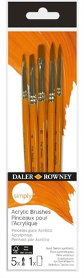 Daler Rowney - Set 5 Pennelli Sintetici 'gold Taklon' (2 Tondi 3 Piatti) - Ref. D216620501 (vedi Descrizione)