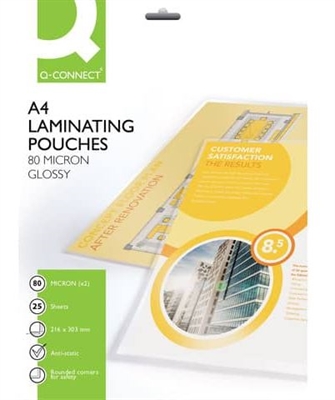Q-connect - Pouches Glossy per Plastificare A4 21,6x30,3 Cm 80 Micron Conf. 25 Fogli - Art. Kf04118