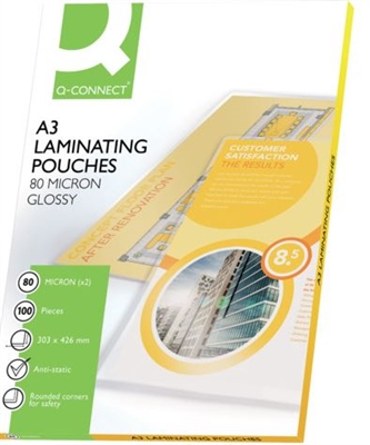 Q-connect - Pouches Glossy per Plastificare A3 30,3x42,6 Cm 80 Micron Conf. 100 Fogli - Art. Kf04122