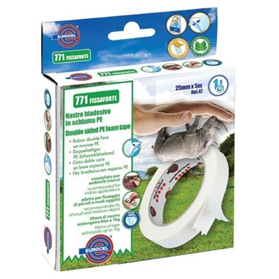 Nastro Biadesivo in Schiuma Pe Mm 19 X 5 Mt - 771 Fissaforte ( 30 Mm Sostengono 1 Kg )