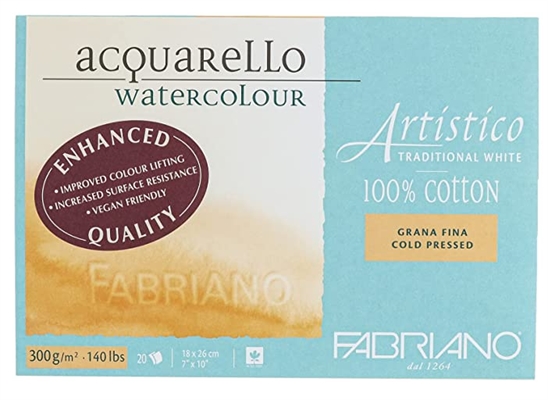 Fabriano Artistico - Traditional White -18x26 Cm - 300 Gr - Blocco Acquerello Collato 4 Lati da 20 Fogli - Grana Fine - Art. 19011826 (fine Serie)